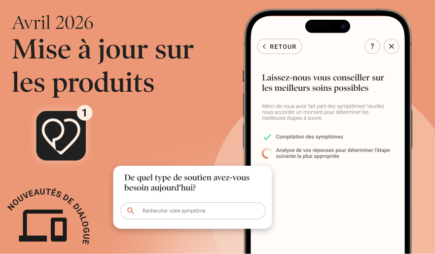 Notre objectif demeure toujours de vous offrir une expérience en soins de santé à la fois transparente et intuitive. N’oubliez pas de tenir à jour votre application Dialogue afin de profiter des dernières nouveautés et améliorations. Si vous utilisez iOS ou Android, activez les mises à jour automatiques pour ne rien louper!